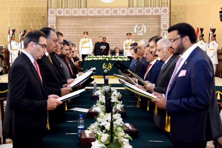 The Federal Ministers, who took oath, include Murtaza Solangi, Dr Umar Saif, Sarfraz Bugti, Dr Shamshad Akhtar, Shahid Ashraf Tarar, Gohar Ejaz, Jalil Abbas Jilani, Jamal Shah, Dr Nadeem Jan, Aneeq Ahmed, Muhammad Sami, Ahmed Irfan, and Anwar Ali Haider.