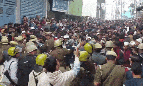 The protesters, numbering in the hundreds, gathered near the Shahi Jama Masjid as the survey team arrived and opposed the move. The situation turned violent as the mob threw stones at the survey team, which was accompanied by heavy police deployment. In retaliation, the police fired tear gas shells to disperse the crowd.