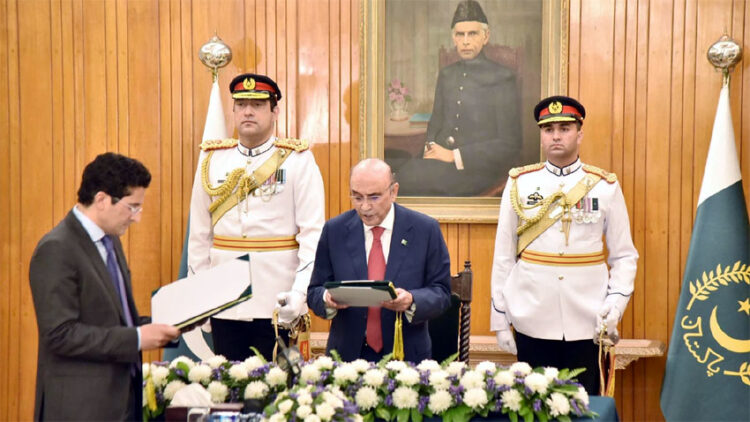 President Asif Ali Zardari administered the oath to him at a ceremony at Aiwan-e-Sadr in Islamabad today.