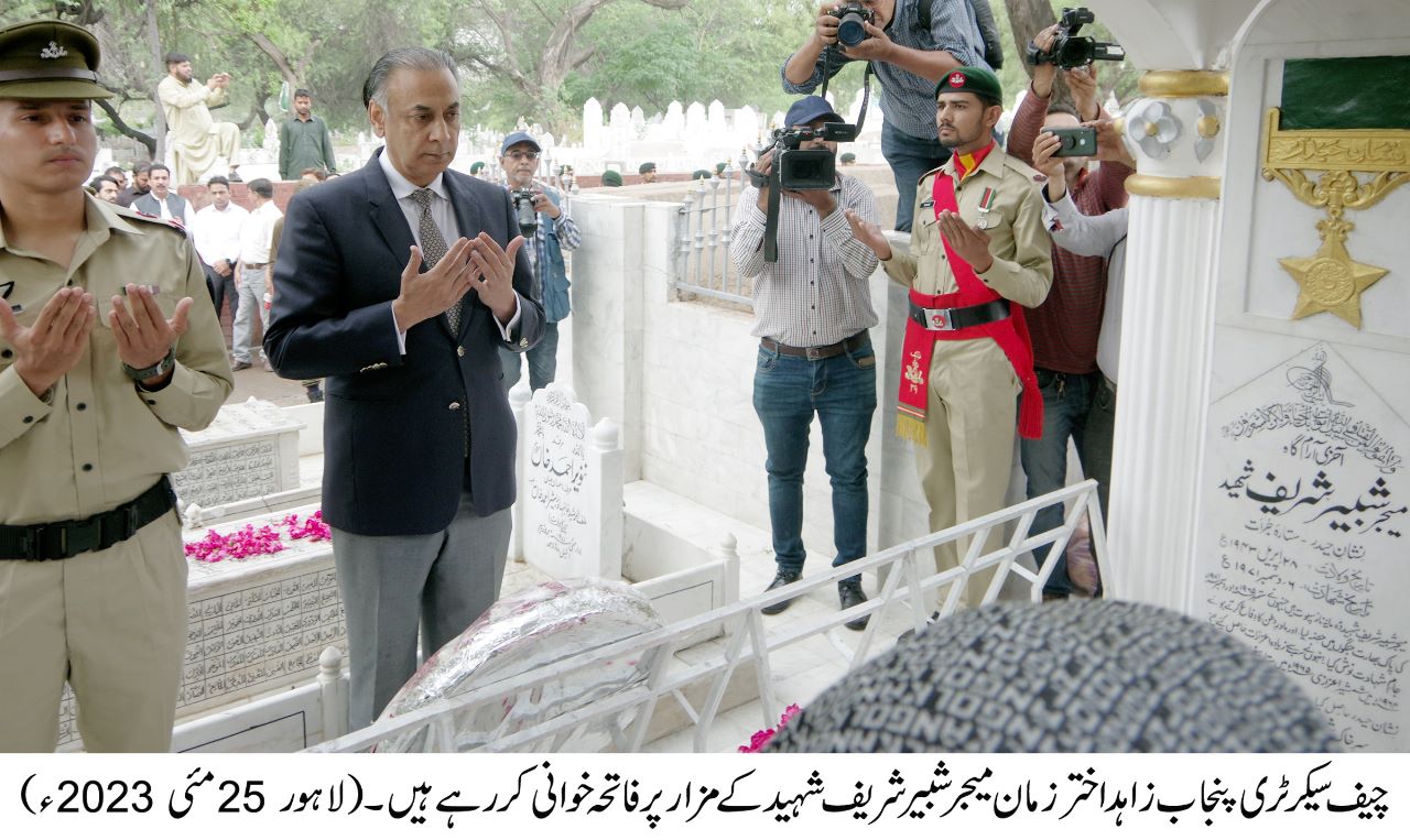 On the occasion of Youm-e-Takreem Shuhda Pakistan, Chief Secretary Punjab Zahid Akhtar Zaman visited the mausoleum of Major Shabir Sharif Shaheed (NH) to pay homage to the martyrs and their
