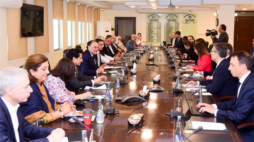 An IMF delegation led by Mission Chief Nathan Porter held a meeting with Finance Minister Muhammad Aurangzeb in Islamabad. Minister of State for Finance Ali Pervez Malik, Governor State Bank,