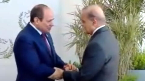 Prime Minister Shehbaz Sharif has arrived at the Congress Center to participate in the Sharm El-Sheikh Peace Summit. Upon arrival at the Congress Center, Egyptian President Abdel Fattah El-Sisi welcomed