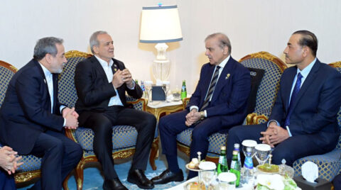 Prime Minister Muhammad Shehbaz Sharif met with Iranian President Dr. Masoud Pezeshkian in Doha on the sidelines of the Emergency Arab–Islamic Summit. During their meeting, the Prime Minister reiterated Pakistan’s