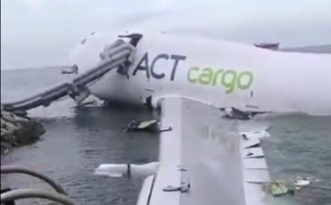 Two people were killed after a cargo plane flying from Dubai skidded off the runway and plunged into the sea while landing at Hong Kong International Airport early Monday, airport
