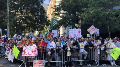 On the sidelines of the ongoing United Nations General Assembly session, spirited Kashmiris staged a massive peaceful protest against India’s state terrorism in Indian illegally occupied Jammu and Kashmir. The