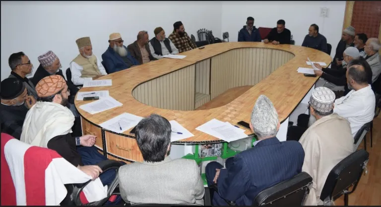 An extraordinary meeting of the officials and members of Anjuman Auqaf Jama Masjid Srinagar was held at the head office of Auqaf under the chairmanship of its head Mirwaiz-e-Kashmir Dr