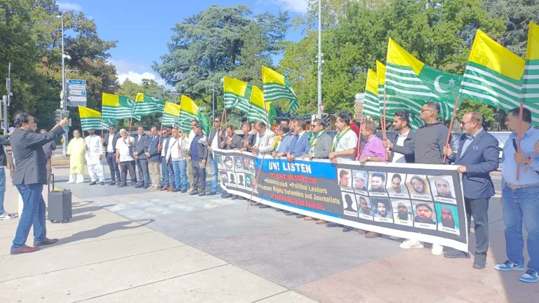 A peaceful protest demonstration was held in front of the United Nations office in Geneva to draw the world’s attention towards the fast deteriorating political and human rights situation in