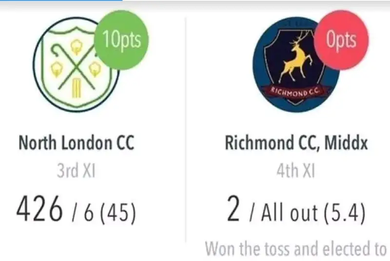 In a bizarre turn of events on the field of Cricket, the England club team, Richmond CC, set a record after getting bowled out for just two runs, losing the