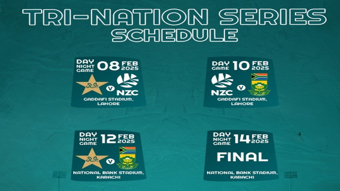 The Pakistan Cricket Board has announced the schedule for the tri-nation ODI series, featuring New Zealand and South Africa. The series will be played on a single-league basis from 8th