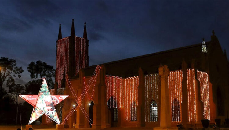 Almost all churches have been decorated with colorful lights and illuminated with Christmas trees.
