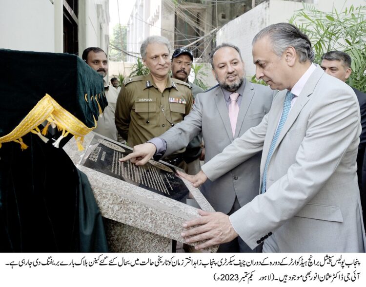 Chief Secretary Punjab Zahid Akhtar Zaman visited the Punjab Police Special Branch Headquarters (Roberts Club) and unveiled the plaque of the Cannon Block restored to its original historic form. Inspector General (IG) of Police Punjab Dr. Usman Anwar and Additional IG Special Branch Zulfiqar Hameed welcomed the Chief Secretary.