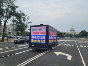 Digital billboard trucks in Washington flash messages against India’s settler colonialism in Kashmir