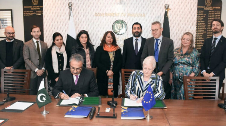 EU Ambassador Ms. Riina Kionka and Secretary Economic Affairs Dr. Kazim Niaz signed the agreements.