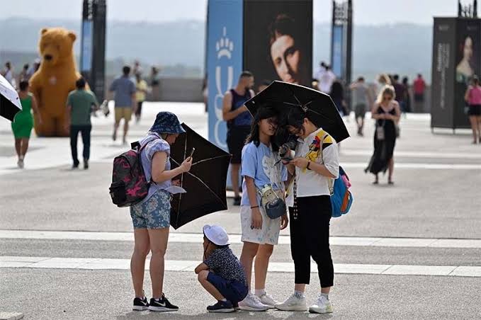 Swathes of Europe baked Tuesday in a heatwave trailed by wildfires and health warnings, as parts of Asia and the United States also suffered under extreme weather, according to AFP.