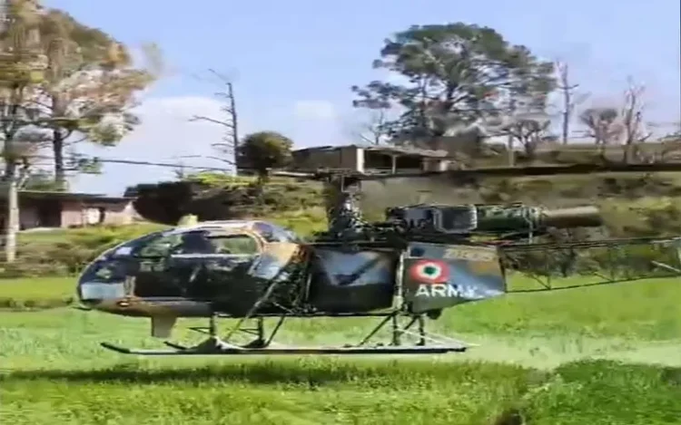 An Indian army helicopter embarked on a routine aerial sortie encountered technical glitches, prompting an emergency landing in a wheat field in Dewak Hathal village, Rajouri, occupied Jammu and Kashmir.