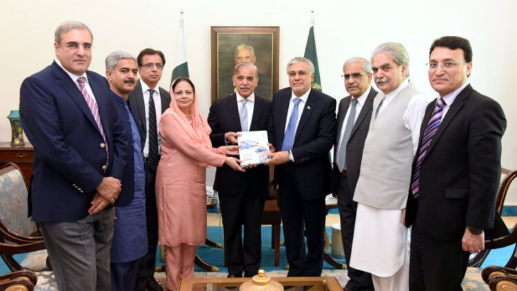 The government’s economic team led by Finance Minister Ishaq Dar called on Prime Minister Shehbaz Sharif in Islamabad on Thursday and presented the Economic Survey for the year 2022-23.
