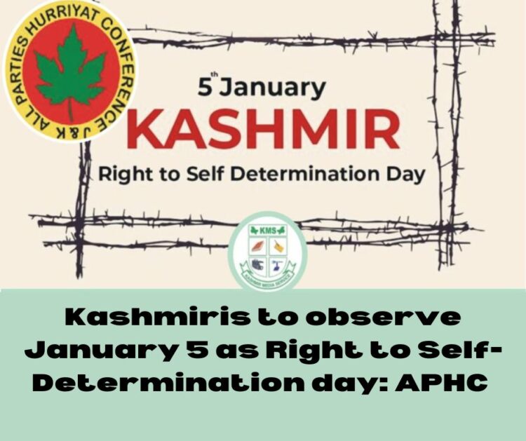 All Parties Hurriyat Conference (APHC) has announced that Kashmiris will observe January 5 as the Right to Self-Determination Day to remind the international community, particularly the United Nations, of its responsibility to resolve the Kashmir issue in accordance with the aspirations of the Kashmiri people.
