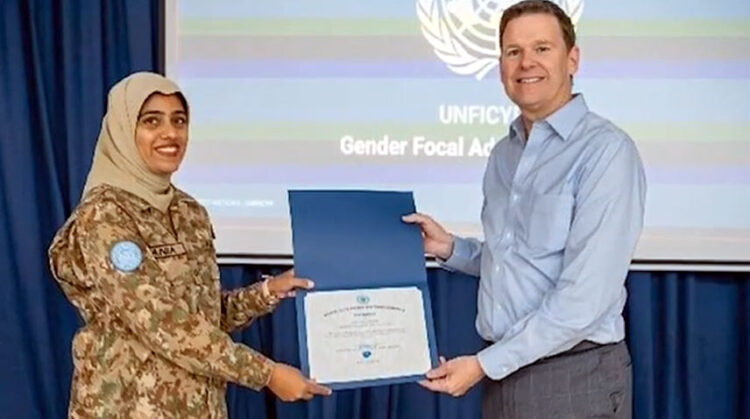 Major Sania Safdar of Pakistan Army has received the UN Gender Award in Cyprus.