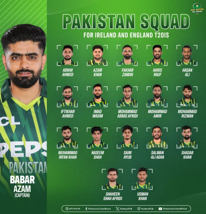 PCB has announced the Pakistan cricket team for the T20I series vs Ireland and England.