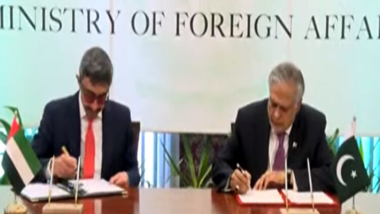 Deputy Prime Minister Ishaq Dar and the UAE’s Deputy Prime Minister Sheikh Abdullah Bin Zayed Al Nahyan signed two MOUs for cooperation in the field of culture and the establishment of joint committee for consular affairs.