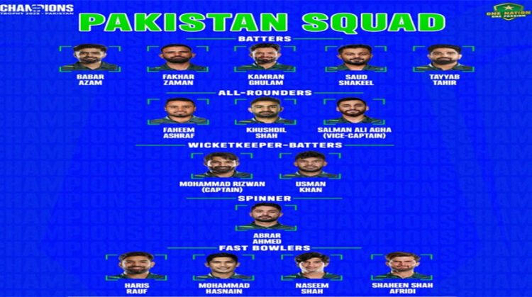 The Pakistan Cricket Board has announced a 15-player squad for the ICC Champions Trophy 2025.