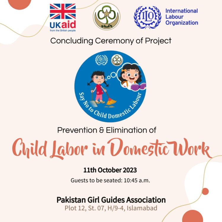Pakistan Girl Guides Association (PGGA) organized a concluding ceremony for its Project “Elimination & Prevention of Child Labor in Domestic Work” at its National Headquarters in Islamabad.