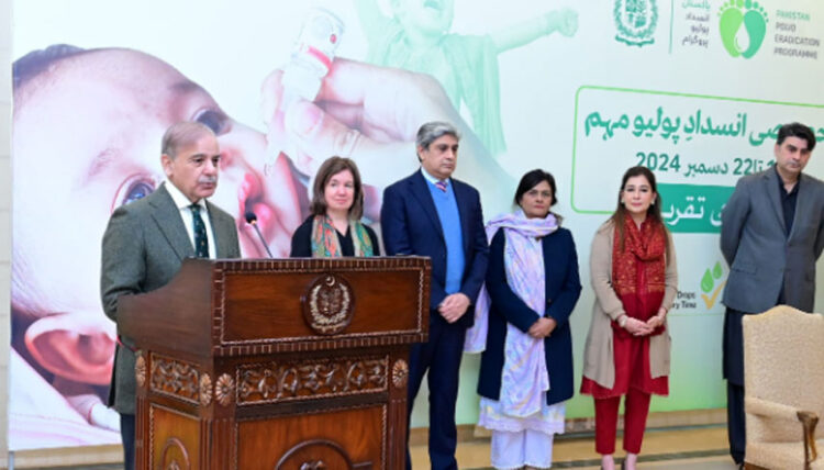 Prime Minister Shehbaz Sharif formally launched the last polio eradication drive of the year by administering anti-polio vaccine to children.