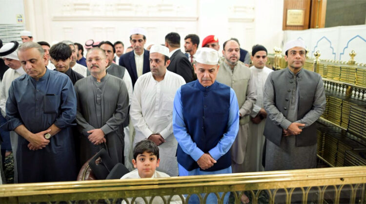 Prime Minister Shehbaz Sharif visited and paid his respects at Roza-e-Rasool (Peace Be Upon Him), after arriving in Madina during his four-day visit to the Kingdom of Saudi Arabia.