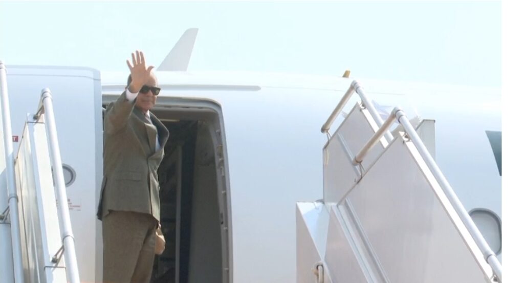 Deputy Prime Minister Mohammad Ishaq Dar, Defence Minister Khawaja Muhammad Asif, Finance Minister Muhammad Aurangzeb, Minister for Information and Broadcasting Attaullah Tarar, Federal Minister for Environment Musadik Malik, and Special Assistant Tariq Fatemi are accompanying the Prime Minister.