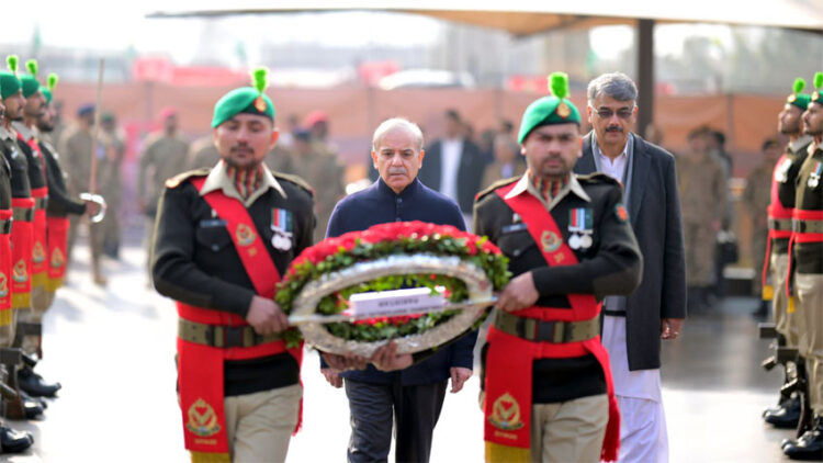 Prime Minister Shehbaz Sharif visited the Martyrs’ Memorial in Muzaffarabad and laid a floral wreath.