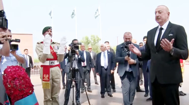 President of Azerbaijan Ilham Aliyev today paid a visit to the martyrs’ memorial at the Pakistan Monument Islamabad and laid a floral wreath.