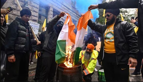 Canadian Sikhs held protests outside Indian diplomatic missions in Ottawa, Toronto, and Vancouver wherein demonstrators carrying Khalistan flags burnt the Indian flag and hit Indian Prime Minister Narendra Modi’s effigy with shoes.