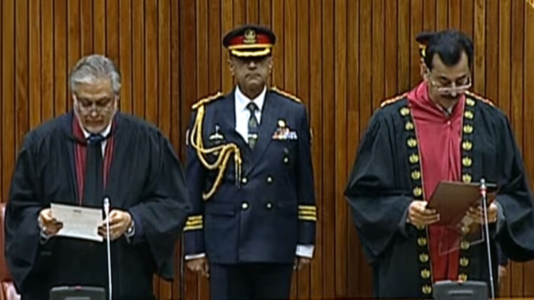 Presiding Officer Ishaq Dar administered him the oath.