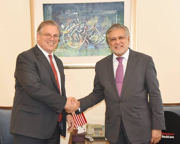 Ishaq Dar on this occasion briefed the American envoy about the government’s plan for economic reforms.