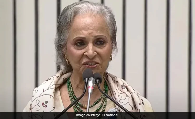 India: Film veteran Waheeda Rehman received the prestigious Dadasaheb Phalke Award at the 69th National Film Awards ceremony, that was held in New Delhi’s Vigyan Bhawan on Tuesday. The Pyaasa actor was teary-eyed as she was handed over India’s highest film honour by President Droupadi Murmu. Upon receiving the award, the actress thanked the Bollywood industry for playing a catalyst in her film journey.
